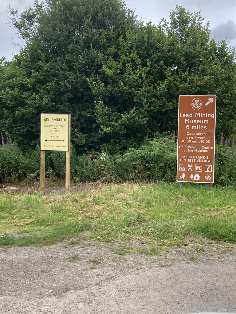Turn off at the Auchengruith sign (next to the brown Leadmining Museum sign) on the B797 and follow the lane up the hill.